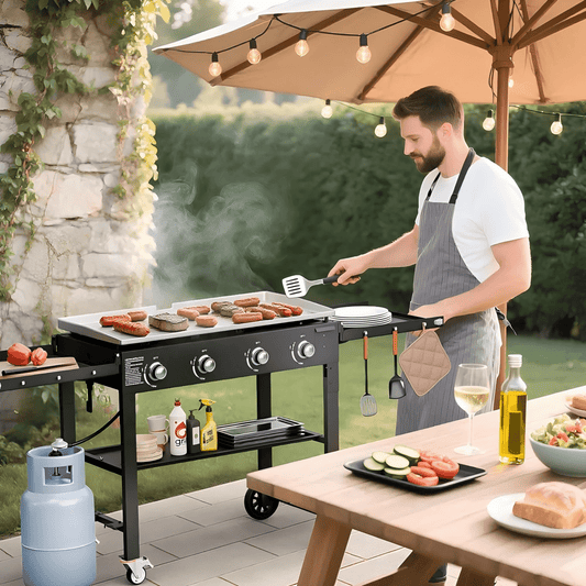 SUGIFT 36" 4-Burner Propane Gas Griddle, 60,000 BTU Flat Top Grill with Side Shelf for Outdoor BBQ & Camping