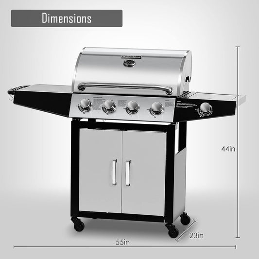 MASTER COOK Gas Grill, BBQ 4-Burner Cabinet Style Grill Propane with Side Burner, Stainless Steel
