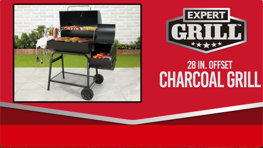 Expert Grill 28" Charcoal Offset Smoker Grill with Side Firebox, Black, New
