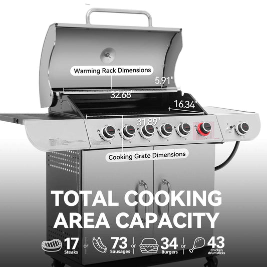 Royal Gourmet SG6002 Classic 6-Burner 71000-BTU LP Gas Grill with Sear Burner and Side Burner, Stainless Steel