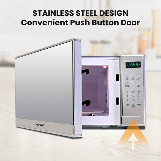 Total Chef Compact Countertop Microwave Oven, 700W, 0.7 Cubic Feet Capacity, Digital Touchscreen Controls, 6 Pre-Set Cooking Modes, Silver Stainless Steel