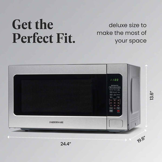Farberware Countertop Microwave Ov 1100 Watts, 2.2 cu ft - Smart Sensor With LED Lighting and Child Lock - Perfect for Apartments and Dorms - Easy Clean Black Interior, Stainless Steel