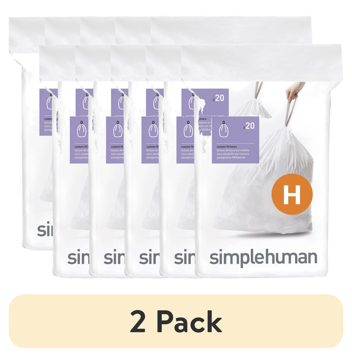 (2 pack) simplehuman Code H Custom Fit Drawstring Trash Bags in Dispenser Packs, 100 Count, 35 Liter / 9.3 Gallon, White