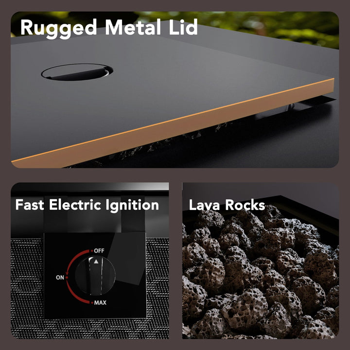 Philergo 28" Propane Fire Pit, 50,000 BTU Square Gas Fire Pit Table for Patio Garden Party with Lava Rocks, Removable Lid, CSA-Certified