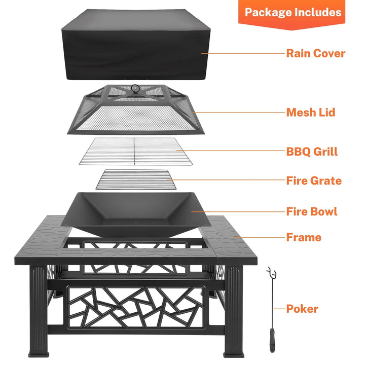 ✔️ All-in-One Accessory Set – Includes fire pit body, mesh lid, BBQ grill, grate, and poker—everything you need to start grilling, heating, or chilling right out of the box.