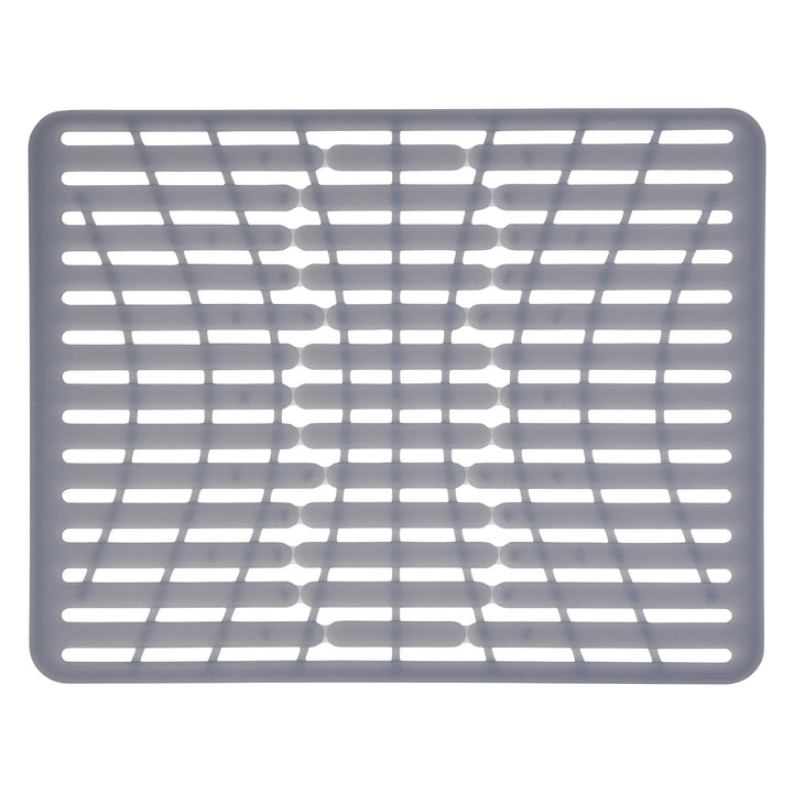 When dishes slip, the soft silicone OXO Softworks Mat provides a safe landing. Heat-resistant up to 425°F, so you can move pots and pans into the sink directly from the stove. Designed to let air and water flow freely. If you want to have an opening around your drain, the Silicone Sink Mat has a convenient pattern that allows you to cut a hole exactly where you need it, whether your drain is in the center or the back of your sink. Also available in a smaller size.