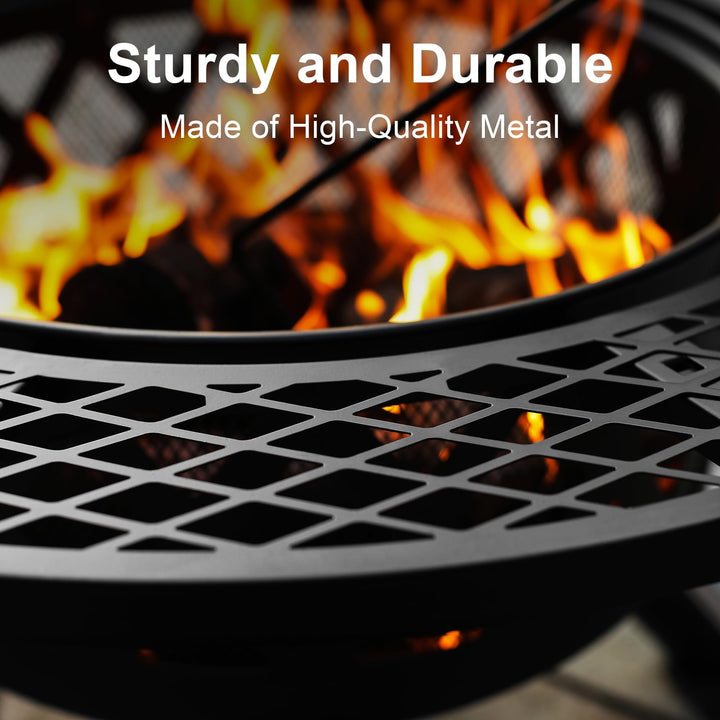 BALI OUTDOORS Fire Pits Outdoor Wood Burning, Wood Fire Pit with Cooking Grate Outdoor Fireplace for your Patio, Backyard, Garden, Camping.