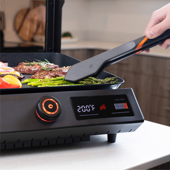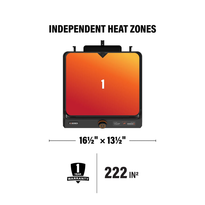 Introducing the Blackstone E-series 17" Electric Tabletop Griddle with Hood. This 17" E-Series Griddle is a brand new style from Blackstone and is perfect for any occasion, whether it be indoor or outdoor. The 238-sq-in griddle plate is machine cast with a durable and elegant ceramic-titanium coating. It has a clean-catch, low profile, rear grease management system. The entire grease cup is dishwasher safe making cleanup simple. You can rotate and remove the E-Series hood for ease of use. Control the temperature with the EZ-Touch control dial and the large LCD Display. If you are new to Blackstone cooking or in the market for an indoor griddle with outdoor performance, this is the griddle for you.