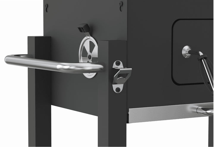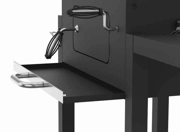 With plenty of grill space to cook for all your family and friends, the Expert Grill Heavy Duty 24" Charcoal Grill will be the star at your next backyard barbecue or gathering. This cart-style grill has a 372 sq. in. main cooking surface that's large enough to grill 20 burgers at once plus a 201 sq. in. warming rack. This grill is equipped with heavy-duty cast iron cooking grates that retain heat exceptionally well and produce restaurant-quality sear marks on steaks, burgers, chicken, and more. Other features include a charcoal access door, an adjustable charcoal pan, and built-in, easy-to-read lid thermometer. The foldable side shelf offers space for platters, marinades, and more, and the shelf has three hooks to keep grill tools and utensils within easy reach. Wheels on the right legs offer easy maneuverability around a porch, patio, or deck. The Expert Grill Heavy Duty 24" Charcoal Grill is available in black with a durable, powder-coated finish.
