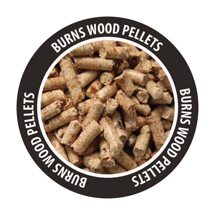 - Burns wood pellets and produces minimal ash using a gravitational afterburner system that minimizes smoke and mess