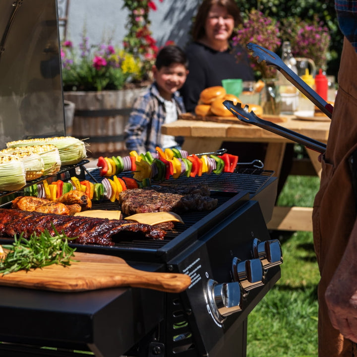 Nexgrill 3-Burner Propane Gas Grill with Side Tables, 27,000BTUs, Stainless Steel Lid, Spacious 429 SQ. In. Cooking Space, BBQ Grill for Outdoor Cooking, Patios, Parties, and More - 720-1012