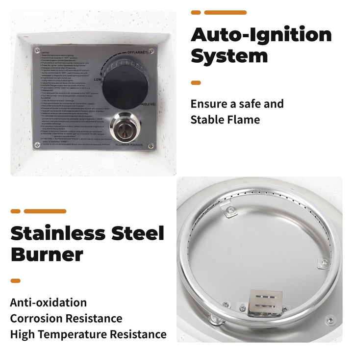 NAGA BAHNA 21" Round Propane Fire Pit 50,000BTU Terrazzo Gas Fire Pit with Glass Stones