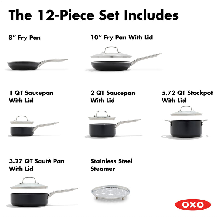 OXO 12 Piece Nonstick Aluminum Cookware Set, Matte