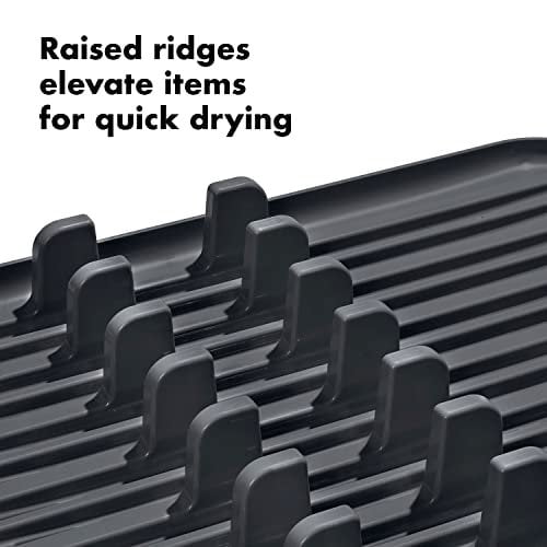 The OXO OXO GOOD GRIPS Aluminum Frame Dish Rack combines the versatility of an open-design platform with the durability of an aluminum frame. The adjustable drain board and removable utensil cup let you...