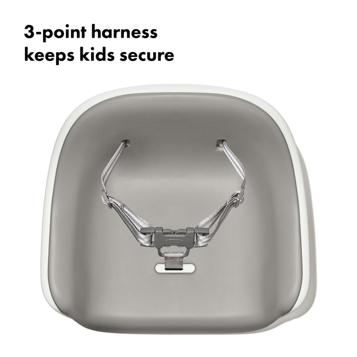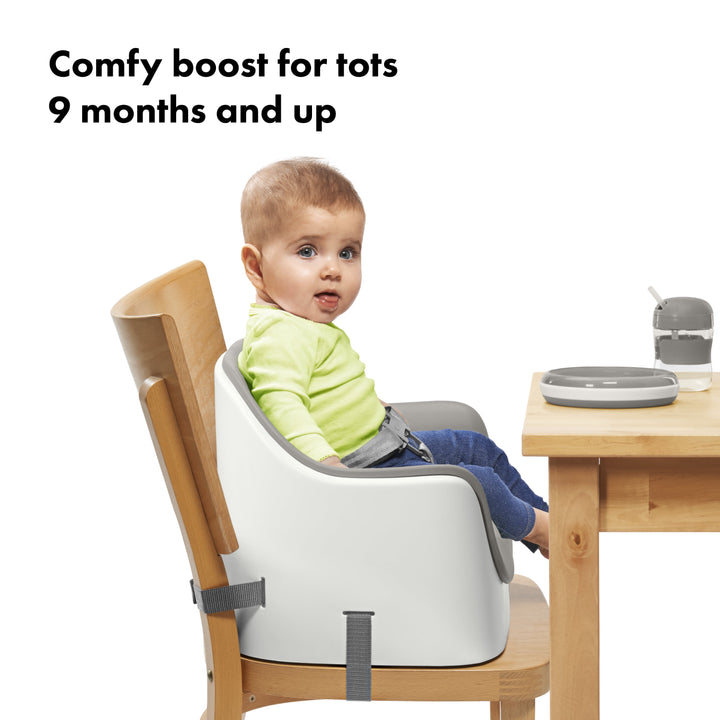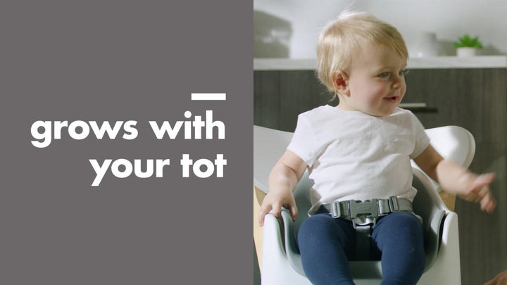 The OXO Tot Nest Booster Seat with Straps is a secure and supportive toddler booster seat that helps bring little ones to the family table. Designed for children as young as 9 months and up to 50 lbs, this booster seat for table use features a high back and supportive sides to keep your child comfortable during mealtime. The soft, removable cushion provides comfort and is easy to clean, making it ideal for everyday use. With adjustable back and bottom chair straps, this baby booster seat with straps securely fits a wide variety of dining chairs. Two side-release buckles and a 3-point harness system help keep even the most active toddlers safe. Non-slip feet keep the dining chair booster stable and protect your furniture from scratches. When it’s time to go, the built-in carry handle makes transport easy, and the straps tuck away neatly into a hidden storage compartment.