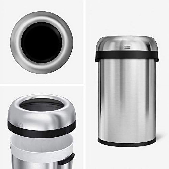 simplehuman's largest bullet open can has an extra-large opening that makes it easy to scrape food off trays or toss in large items like pizza boxes. The heavy-gauge stainless steel construction, lift-off lid...
