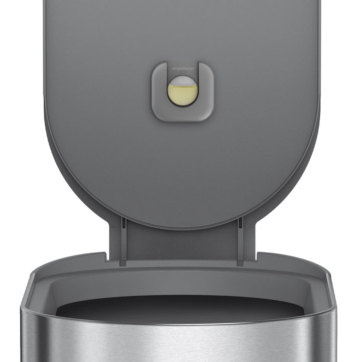 - NEAT AND SECURE - Stainless steel liner rim flips up for a quick and easy liner change, then closes over the liner to hold it tightly in place and keep it hidden from sight.