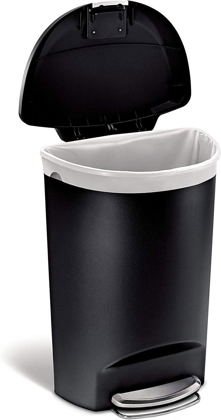 Product Description A great value for any kitchen, the semi-round plastic step can has features unprecedented for a plastic can: simplehuman's proprietary lid shox technology for a smooth, quiet close and a slide...