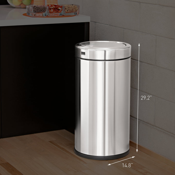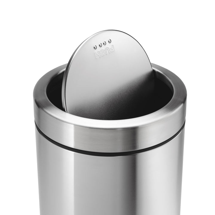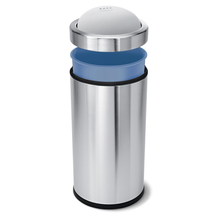 simplehuman's swing top can has a perfectly balanced swing lid that opens easily and then gently swings back into place. The sturdy stainless steel construction, lift-off lid, and large capacity make it an ideal choice for commercial spaces such as restaurants and coffee shops, or even busy families.