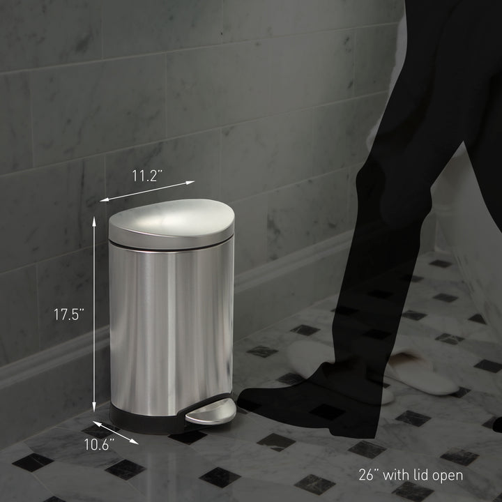 simplehuman 10 Liter / 2.6 Gallon Small Semi-Round Bathroom Step Trash Can, Brushed Stainless Steel