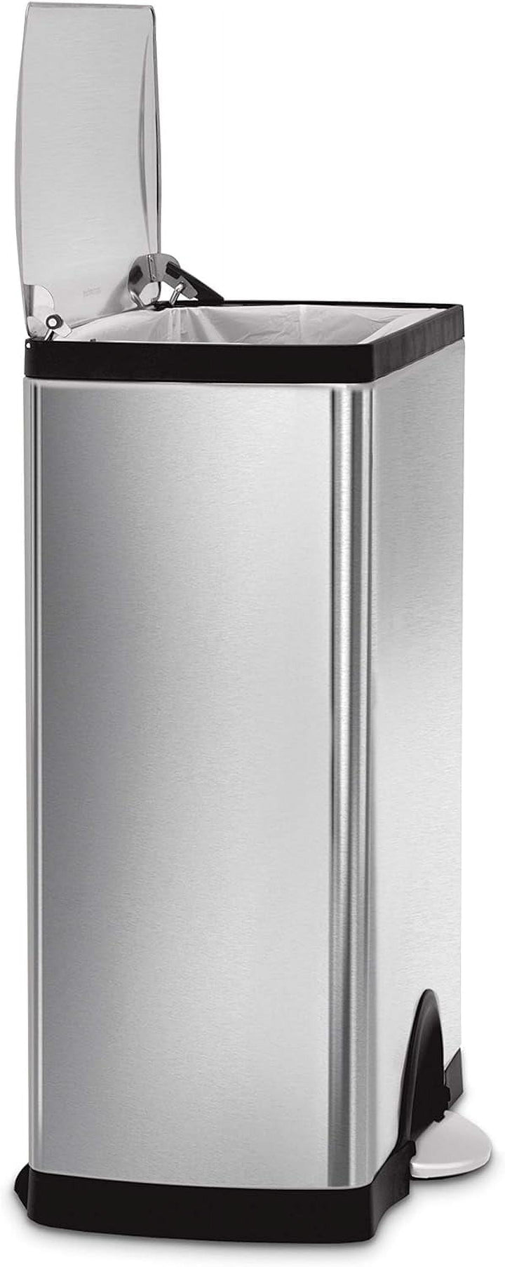 simplehuman designs tools that help people become more efficient at home.Internal hinge and a space-efficient shape for placement against the wall and out of the way. Strong steel pedal and silent-close lid.⢠Rectangular...