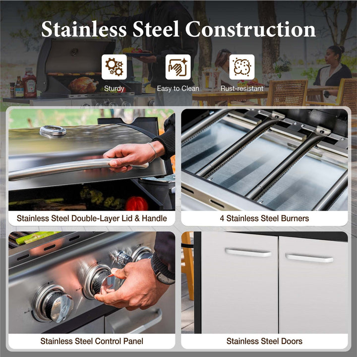 MF Studio 4 Burner Propane Gas Outdoor Grill with Side Burner Stainless Steel BBQ Grill