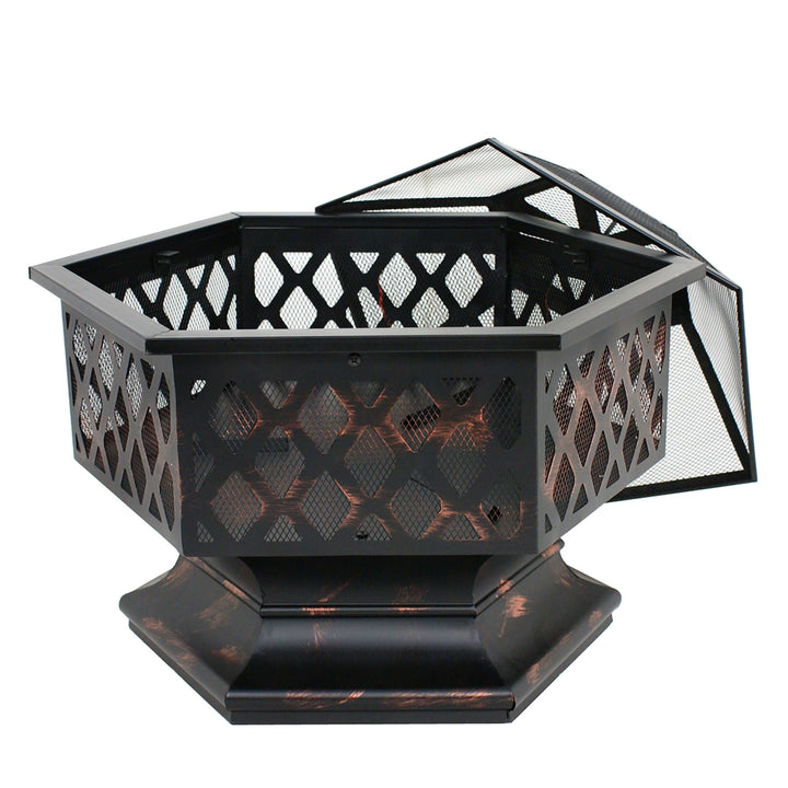 ZENSTYLE Outdoor Patio Steel Fire Pit - 24" Hex Shaped Backyard Fireplace Wood Burning Firepit Bowl